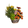 The Sunlit Garden Basket is a beautifully arranged selection of fresh seasonal flowers presented in a rustic woven basket. Featuring soft peach tones, sunny yellows, and lush greenery, this arrangement captures the relaxed elegance of a blooming garden.